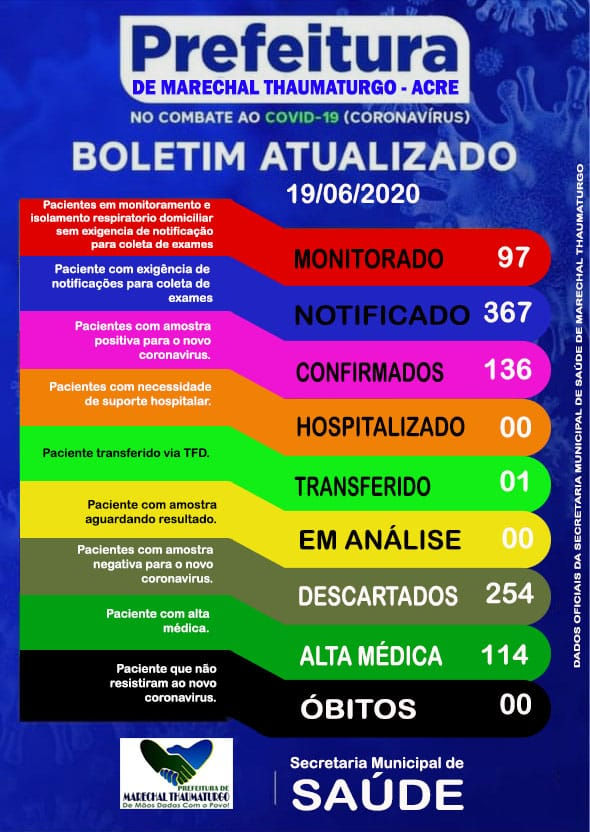 Boletim Covid atualizado, 19 de junho de 2020Pref Marechal Thaumaturgo19 de jun. de 20200 min de leitura