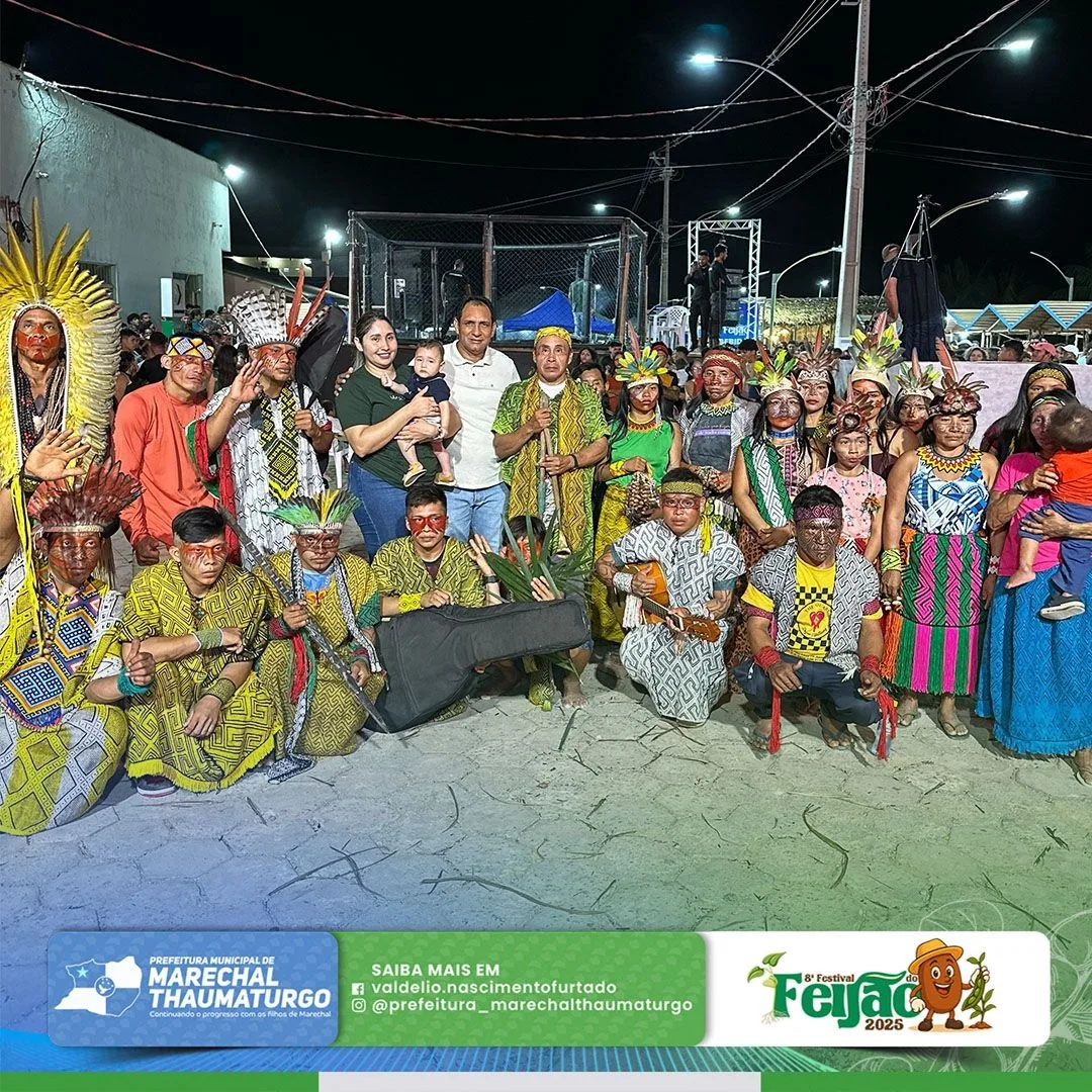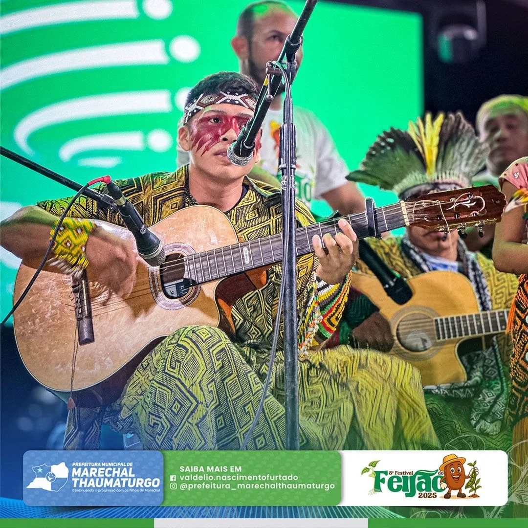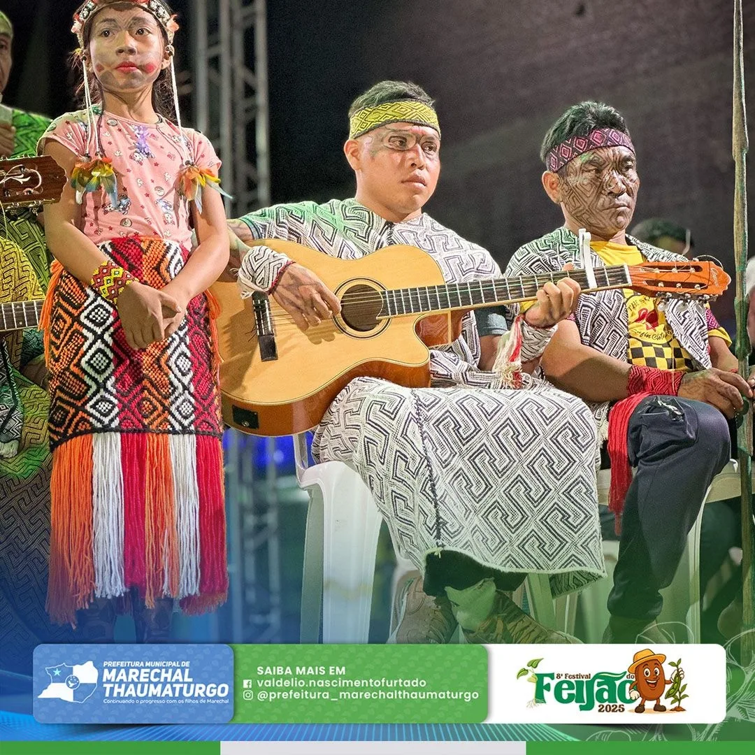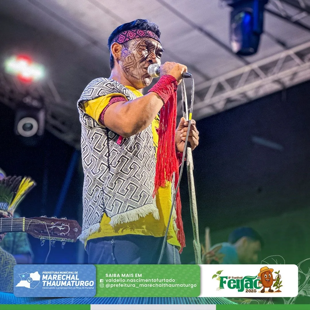 No último domingo (30), o terceiro dia do Festival do Feijão foi marcado por uma rica programação cultural. As apresentações dos povos indígenas Apolima Arara (Aldeia Novo Destino) e dos Kaxinawá do Rio Breu emocionaram o público com danças, cantos e manifestações tradicionais que exaltam a força e a identidade dos povos originários de nossa região.